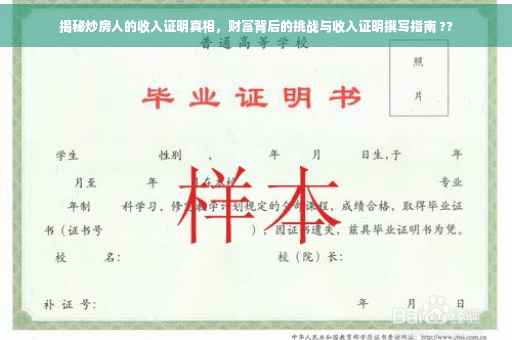 在当今社会,炒房成为了一种普遍的投资方式,越来越多的人投身于房地产市场,希望通过炒房实现财富的增值,炒房人的收入证明却是一个令人关注的焦点话题,本文将深入探讨炒房人的收入证明背后的真相与挑战,揭示这一领域的真实面貌。