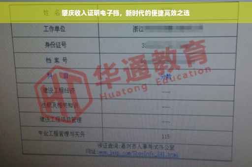 随着科技的快速发展,各行各业都在逐步实现数字化转型,肇庆市作为广东省的重要城市,也在积极推进信息化建设,为企业和个人提供更加便捷的服务,肇庆收入证明电子档作为新兴的一项服务举措,正受到越来越多企业和个人的关注,本文将详细介绍肇庆收入证明电子档的相关信息,帮助大家更好地了解这一便捷、高效的新时代选择。