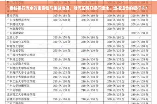 摘要:银行流水在财务和金融领域具有重要地位,对于个人和企业而言,了解银行流水的重要性与选择策略至关重要。本文将探讨如何有效打银行流水,并重点讨论在选择银行流水时应考虑哪些卡。通过本文,读者将了解如何利用银行流水提升财务管理效率,以及如何选择合适的银行卡以获取更优质的银行流水服务。
