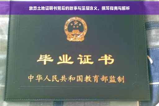 摘要:本文将探讨放弃土地证明书背后的故事和深层含义,介绍什么是放弃土地证明书以及其在不同情境下的应用。文章将指导读者如何撰写放弃土地证明书,包括应注意的细节和格式要求。通过本文,读者将了解到放弃土地证明书的重要性及其在实际应用中的意义。