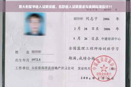 随着留学热潮的持续高涨,越来越多的职场人士选择在工作之余赴意大利深造,对于这部分人群来说,提供在职收入证明是留学申请过程中的重要环节,本文将详细介绍意大利留学在职收入证明的相关内容,帮助读者更好地理解和准备。