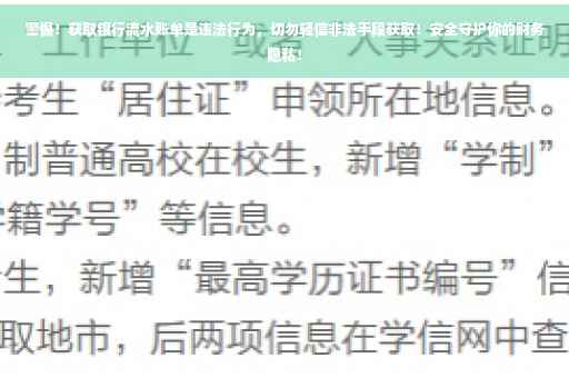 4. 法律责任:非法获取银行流水属于违法行为,将承担法律责任。