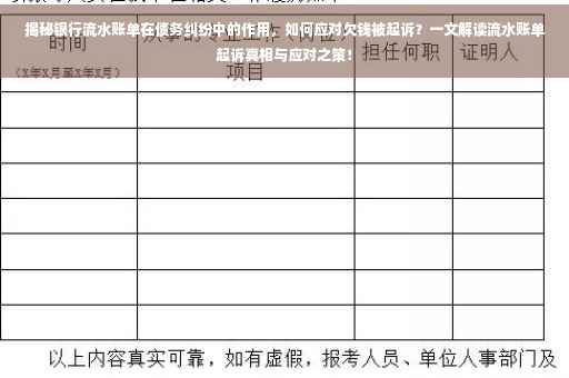 在当今社会,随着经济的繁荣和信用消费模式的普及,个人债务问题愈发常见,当债务纠纷升级至法律层面时,如何妥善应对就显得尤为重要,本文将围绕“欠钱银行流水起诉”这一主题,详细解读如何通过银行流水账单应对债务纠纷的起诉,并探讨相关法律责任和应对策略。