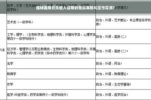 摘要:本文将探讨离婚时开具无收入证明的相关问题,揭示背后的故事和真相。文章将简要介绍无收入证明的概念和作用,并详细阐述开具该证明的具体步骤和注意事项。本文还将分析离婚开无收入证明可能涉及的情况和背景,帮助读者更好地了解这一过程。
