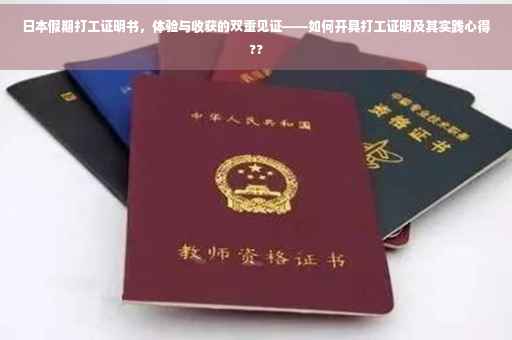 摘要:日本假期打工证明书是体验与收获的双重见证,对于想要在日本打工的学生来说十分重要。开具此证明书需要经过一系列步骤,包括选择合适的打工岗位、签订合同、完成工作内容等。通过打工,可以深入了解日本文化、提高语言能力,并积累实践经验。这一过程不仅有助于学业,更有助于个人成长和职业发展。