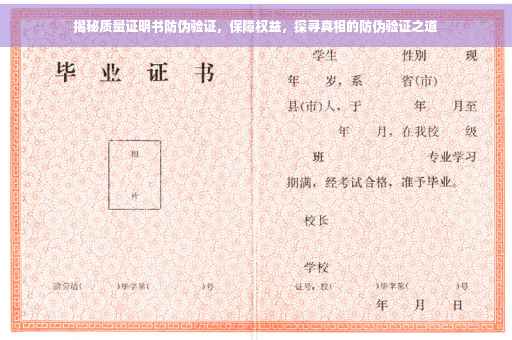 在当今社会,随着科技的飞速发展和市场竞争的加剧,产品质量成为了消费者关注的焦点,质量证明书作为产品合格与否的重要凭证,其真实性、有效性及防伪性能日益受到重视,本文将深入探讨质量证明书的防伪验证问题,揭示其背后的秘密,旨在保障消费者的权益,为消费者提供明智的选择依据。