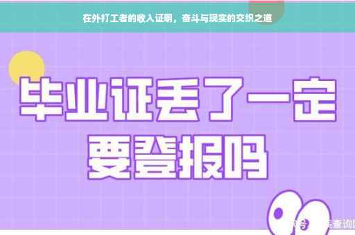 随着社会的不断发展,越来越多的人选择离开家乡,前往陌生的城市打工谋生,他们有的是为了改善家庭的经济状况,有的是为了追求更好的生活,还有的是为了实现自己的梦想,无论出于何种原因,他们都在为生活努力奋斗,在这篇文章中,我们将聚焦于在外打工者的收入证明,探讨他们的生存现状、所面临的挑战以及收入证明的重要性。