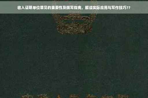 在现代社会,随着就业市场的日益竞争和职场文化的变迁,收入证明成为了求职过程中的一项重要环节,单位意见作为收入证明的一部分,对于求职者而言具有举足轻重的作用,本文将详细解读收入证明的单位意见的重要性,并探讨其实际应用,帮助求职者更好地理解和利用单位意见。