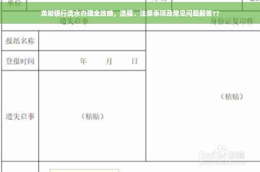 摘要:本文将详细介绍龙口办银行流水的办理流程,包括所需材料、步骤和注意事项。针对办理过程中可能遇到的常见问题,提供解答。阅读本文,您将了解如何在龙岩办理银行流水,以及办理过程中需要注意的事项和解决方法。