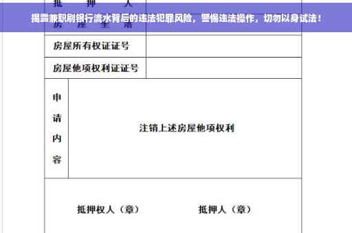 近年来,随着网络科技的飞速发展,各种新型兼职层出不穷。“兼职刷银行流水”这一看似轻松赚钱的方式逐渐进入公众视野,一些人可能因贪图小利而陷入其中,却不知这种行为背后隐藏着巨大的风险,甚至可能涉及违法犯罪,本文将深入探讨兼职刷银行流水的真相,揭示其潜在风险,并提醒广大读者切勿以身试法。