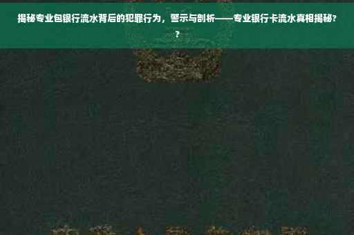 摘要:,,本文揭露了专业包银行流水犯罪行为的警示与剖析。通过深入了解,发现一些不法分子利用银行卡流水进行非法操作,严重破坏了金融行业的秩序和安全性。本文旨在提醒公众提高警惕,防范此类犯罪行为的发生,同时呼吁相关部门加强监管力度,共同维护金融市场的健康发展。