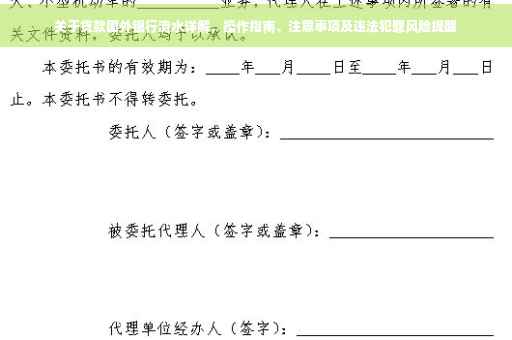 本文详细介绍了贷款国外银行流水的概念、操作指南及注意事项,希望通过丰富的实例和经验分享,帮助读者更好地了解和处理相关问题,在申请贷款过程中,请务必遵守相关规定,如有疑问,建议咨询专业人士或相关银行。