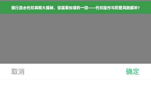随着金融行业的迅速崛起,银行业务日益便捷化,其中银行流水代扣服务成为了众多消费者的优选之一,本文将为你全方位揭示银行流水代扣背后的真相,从定义、操作流程到注意事项等方面进行全面解析,帮助你更好地理解和使用这一服务。