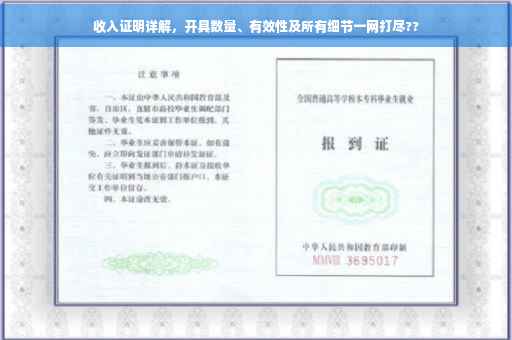 摘要:本文详细介绍了收入证明开具数量的相关信息以及有效期限的细节。内容涵盖收入证明开具的具体流程、所需材料以及注意事项等。文章强调,收入证明的有效期限并非固定,可能受多种因素影响。读者可以了解如何正确开具收入证明,并确保其有效性。??(摘要字数约控制在要求的范围内。)