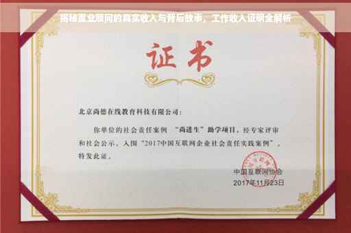 摘要:本文将揭示置业顾问的真实收入状况,探究其工作收入证明的背后故事。包括如何撰写一份规范的置业顾问工作收入证明。通过深入了解这一职业的收入状况,读者可以更好地了解该行业,并做出更明智的职业选择。摘要字数控制在100-200字以内。