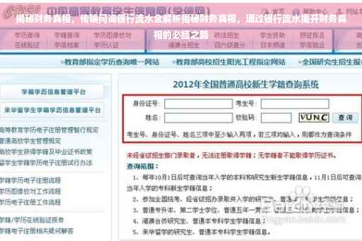 摘要:,,本文将介绍如何通过传唤问询银行流水来揭开财务真相。需要明确传唤问询银行流水的目的和重要性。将详细介绍如何正确书写传唤问询银行流水的申请,包括申请内容、格式和注意事项。通过本文的指导,读者可以了解到如何通过合法途径获取银行流水信息,以便更准确地了解个人或企业的财务状况。摘要字数控制在100-200字以内。