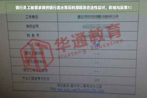 本文详细分析了银行要求员工提供银行流水的背后原因、影响以及争议等问题,并提出了相应的建议与措施,随着金融行业的不断发展,这一问题将越来越受到关注,我们需要在保障银行和员工的利益的同时,加强政策制定和实施过程中的透明度和公正性十、社会反响与舆论引导