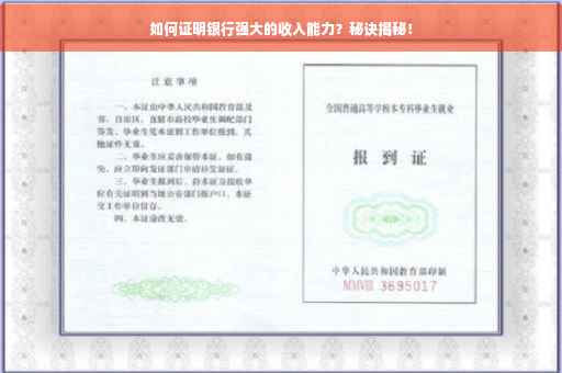 证明银行收入能力对于个人和机构都非常重要,通过查看财务报告、分析经营状况以及了解产品和服务创新情况等方式,可以评估银行的收入能力,对于个人而言,提供工资流水证明、其他收入来源证明以及建立良好的信用记录等方式,可以证明个人的收入能力,了解如何证明银行收入能力有助于个人在金融市场中获得更好的服务和产品。