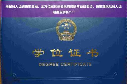 摘要:本文将全方位解读收入证明的税前要点,揭秘收入证明税前需要多少。文章将详细阐述薪资税前扣除与证明要点,解答读者关于收入证明是否需要税前或税后的疑惑。通过本文,读者将了解如何正确准备收入证明,确保符合相关要求和规定。