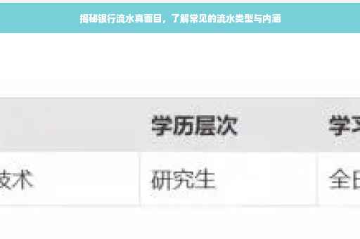 根据不同的分类标准,银行流水可以分为多种类型,以下是最常见的几种分类方式: