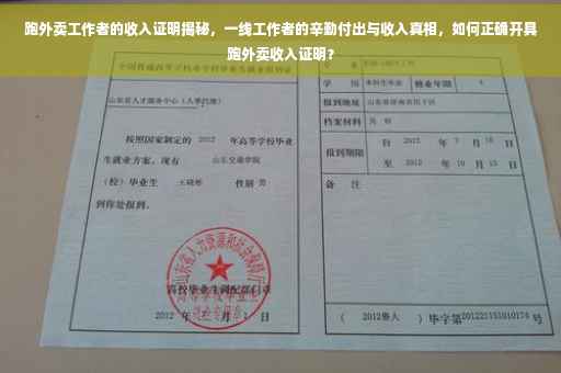 摘要:跑外卖的工作者在一线辛勤付出,其收入证明是反映他们劳动价值的重要文件。收入证明通常包括收入来源、收入金额及工作时间等信息,需真实反映外卖骑手的实际收入情况。开具跑外卖的收入证明需准备相关材料,如劳动合同、工资流水等,并加盖公司公章。这份证明能体现一线工作者的辛勤付出与收入真相,呼吁社会更加关注和尊重他们的劳动价值。