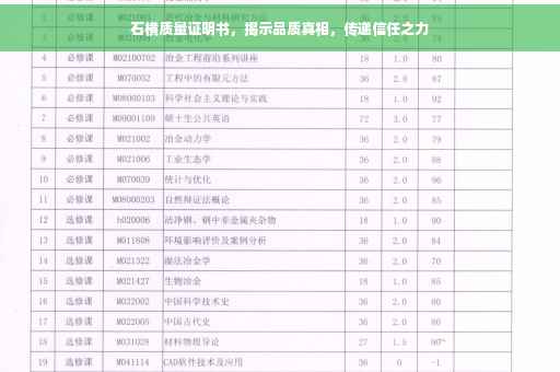 在当今社会,产品质量已成为消费者最为关注的问题之一,作为自媒体作者,我有责任为广大消费者揭示产品的真实品质,传递信任力量,我将为大家介绍一份关于石横质量证明书的文章,帮助大家了解该证明书的重要性以及如何通过石横质量证明书判断产品的品质。