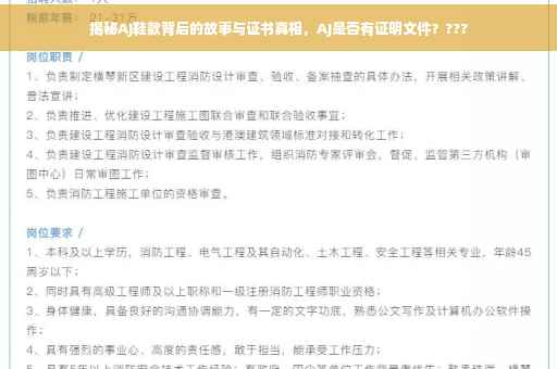 对于热爱运动鞋的朋友们来说,AJ系列无疑是其中的翘楚,每当提及AJ,人们总会联想到经典的篮球元素与独特的鞋款设计,随着市场的繁荣与消费者的日益增多,一个问题逐渐浮出水面:AJ有证明书吗?让我们一起揭开AJ鞋款背后的故事,探寻证明文件的真相。