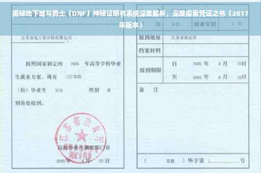随着网络游戏的飞速发展,许多经典游戏逐渐崭露头角。《地下城与勇士》(DNF)作为一款备受瞩目的游戏,吸引了大量玩家的关注和喜爱,在游戏中,有一种神秘的物品——证明书,它对于玩家来说具有极高的价值,本文将深度解析DNF中的证明书系统,帮助玩家更好地了解其作用和重要性。