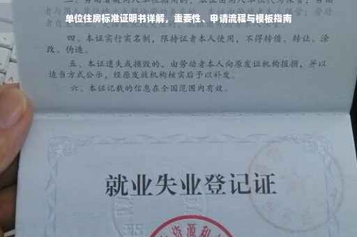 在当今社会,随着城市化进程的加速,住房问题日益受到人们的关注,对于许多在职员工来说,单位住房标准证明书是他们解决住房问题的重要途径之一,本文将详细介绍单位住房标准证明书的重要性、申请条件及流程,帮助大家更好地了解并顺利获得这一证明。