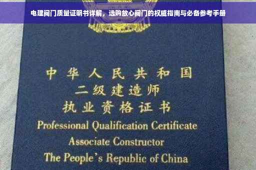 摘要:电建阀门质量证明书是选购放心阀门的必备指南。它提供了阀门的详细质量信息,包括材料、制造工艺、检测标准等,确保用户能够了解阀门的可靠性和安全性。撰写电建阀门质量证明书时,应准确描述产品的各项指标和性能,提供必要的测试和检验报告,以确保用户能够做出明智的购买决策。