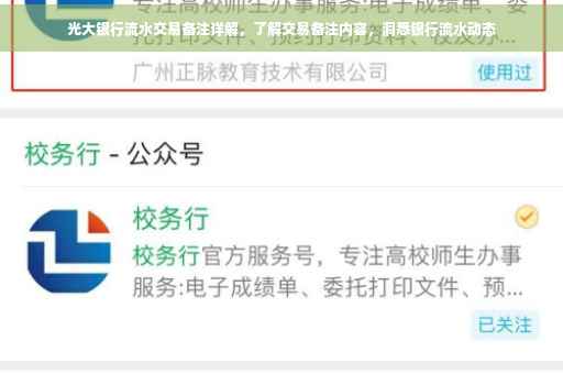 随着互联网技术的不断发展,银行业务逐渐走向数字化、智能化,作为客户,我们越来越关注银行交易的安全与便捷,光大银行作为国内领先的金融机构之一,其流水交易备受关注,本文将详细介绍光大银行的流水交易备注功能,帮助广大客户更好地了解和使用这一服务。