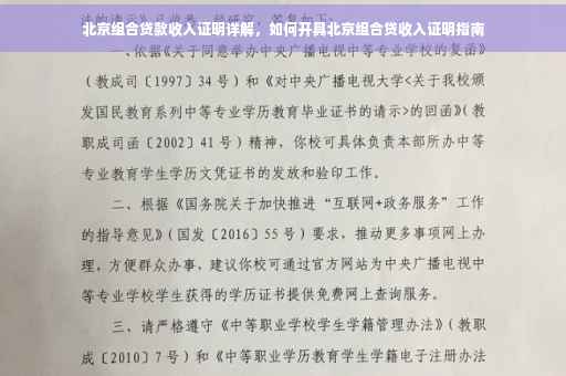 摘要:本文将详细介绍北京组合贷款的申请流程中的收入证明部分。首先解释了什么是组合贷款收入证明,接着阐述了在北京如何开具组合贷款收入证明,包括所需材料、步骤和注意事项。对于需要申请北京组合贷款的人群来说,本文提供了实用的指导和建议。