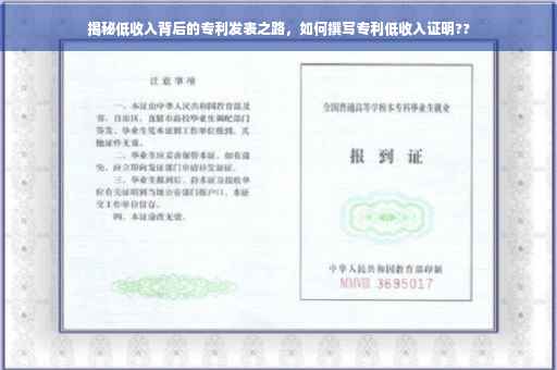 摘要:本文将探讨低收入人群背后的专利发表之路。本文将介绍如何撰写低收入证明以支持专利发表,同时揭示这一过程中所面临的挑战和机遇。通过本文,读者将了解到即使收入较低,也能通过不断努力和创新,实现专利的发表。本文旨在为有志于发表专利的低收入人群提供指导和启示。