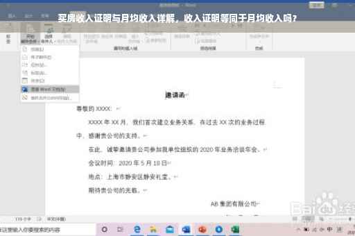 摘要:关于购房过程中的收入证明与月均收入问题,本文将详细解释两者的概念及关系。收入证明是在购房过程中,为证明个人经济能力而提供的文件,其中包含了月均收入等重要信息。但收入证明并不等同于简单的月均收入,它还可能包括其他收入来源。购房者在准备收入证明时,应确保信息的真实性和完整性,以便顺利贷款购房。
