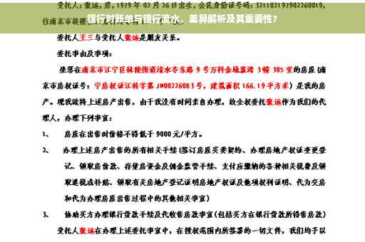 在日常生活中,我们经常会接触到银行对账单和银行流水这两个概念,虽然这两者都与银行业务息息相关,但它们之间存在一定的差异,本文将详细解析银行对账单与银行流水的区别,帮助读者更好地理解两者的概念及功能。