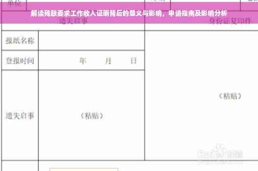 近年来,随着国家对残疾人权益保障的重视,残联作为代表残疾人群体的组织,承担着为残疾人争取权益、提供帮助的重要职责,为了更好地保障残疾人的权益,残联制定了一系列政策,其中之一便是要求申请者在申请相关福利时提供工作收入证明,这一规定的出台,旨在确保福利资金的公平、公正分配,避免不必要的浪费。