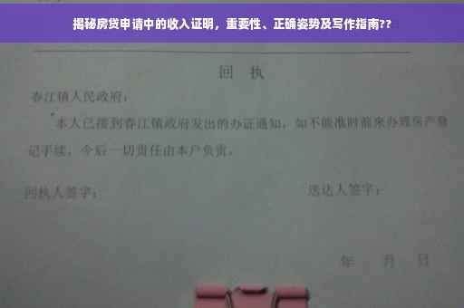 在申请房贷的过程中,职业收入证明是不可或缺的一环,它不仅是银行评估借款人还款能力的重要依据,更是决定贷款额度、利率及贷款期限的关键因素,本文将详细解析房贷职业收入证明的重要性,并为你提供撰写规范、技巧及注意事项,助你顺利获得房贷。