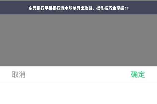 本文介绍了东莞银行手机银行流水账单的导出攻略,提供操作技巧,帮助用户轻松掌握导出流水账单的方法。通过简单的步骤,用户可以方便地查看和保存自己的银行流水账单,以便进行财务管理和记录。文章简洁明了,旨在为用户提供便捷的操作指南。