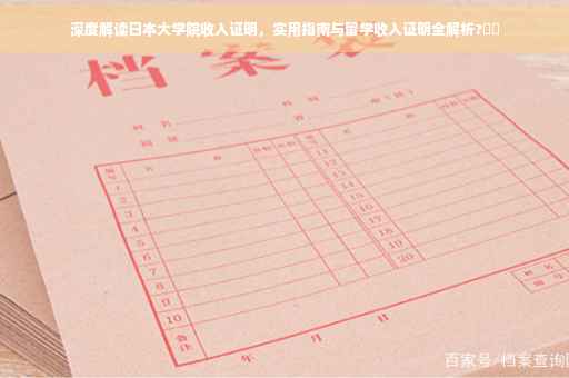 随着全球化趋势的加强,越来越多的中国学生选择赴日本攻读大学院(研究生)学位,在日本,大学院的生活和学习成本相对较高,收入证明成为了留学申请过程中的重要环节,本文将详细介绍日本大学院收入证明的相关内容,以帮助有意赴日留学的学子更好地了解和准备。