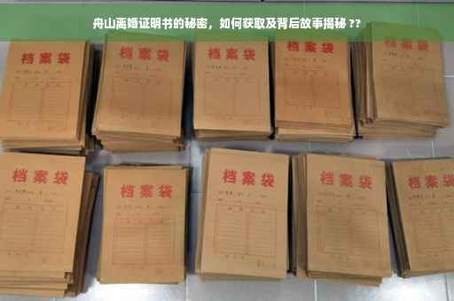 摘要:本文将介绍舟山离婚证明书的背后故事,包括其重要性、用途以及开具流程。在舟山,离婚证明书是证明婚姻关系解除的重要文件,需要在当地民政局开具。本文将指导读者如何获取舟山离婚证明书,并揭示其背后的故事和意义。