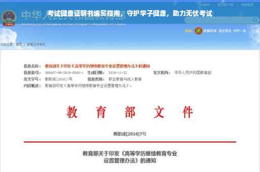 本文全面介绍了考试健康证明书的意义、内容、获取流程、注意事项及相关建议,希望广大考生和家长能够充分了解,确保在参加考试时能够顺利提交健康证明书,祝愿所有考生身体健康,考试取得好成绩!