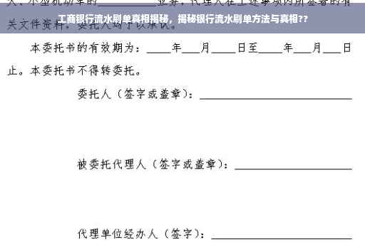 随着电子商务和网络交易的普及,银行业务已逐渐融入人们的日常生活,银行流水账单作为个人或企业经济活动的记录,其重要性日益凸显,近年来围绕工商银行等银行的流水账单刷单行为引起了广泛关注,本文将深入探讨银行流水刷单背后的真相,带您了解刷单的运作机制、潜在风险以及应对策略。