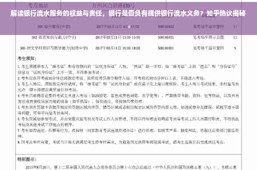在日常的生活与工作中,银行流水作为证明个人经济活动的关键证据,经常需要在各种场合出示,对于客户而言,了解银行流水服务的权益与责任至关重要,本文将围绕这一问题展开讨论,带领大家深入了解银行流水服务的各个方面。