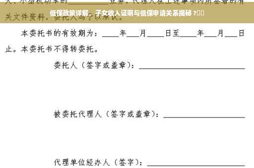 随着社会保障体系的不断完善,低保政策在中国社会中发挥着越来越重要的作用,许多家庭因为各种原因陷入困境,无法维持基本生活,而低保政策则为这些家庭提供了有力的支持,在申请低保的过程中,子女收入证明成为了一个重要的考量因素,本文将详细介绍低保政策的相关内容,并重点阐述子女收入证明在低保申请中的地位和作用。