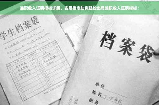 摘要:本文将详细介绍兼职收入证明模板,包括其重要性、使用场景以及具体内容。通过本文,读者可以了解如何正确撰写兼职收入证明模板,以便雇主或相关机构验证个人兼职收入情况。文章将涵盖模板的基本格式、必要信息点以及注意事项,帮助读者高效、准确地完成兼职收入证明。