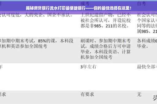 在申请房贷的过程中,银行流水是必不可少的一项证明材料,对于许多购房者来说,选择一家合适的银行打印银行流水成为了一个关键问题,本文将详细介绍各大银行在房贷银行流水打印方面的服务,帮助您轻松找到最便捷的银行。