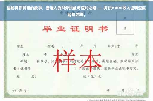 摘要:本文主要探讨了月供8400收入证明背后的故事,揭示了普通人的财务挑战。通过月供3400收入证明作为案例,展示了如何应对财务压力。文章旨在帮助人们更好地管理个人财务,克服经济困难,实现财务自由。