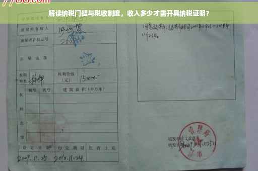 摘要:纳税证明是反映个人或企业税务缴纳情况的重要证明,但纳税门槛和税收制度因地区和政策而异。纳税人的收入达到一定额度,如月工资超过一定限额,就需要缴纳个人所得税并可能获得纳税证明。具体纳税标准和制度需参照当地税务部门的规定。了解纳税制度和门槛有助于个人和企业合理规划和遵守税务法规。