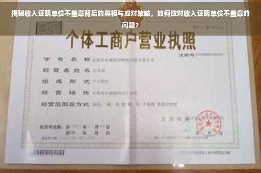 摘要:面对收入证明单位不盖章的情况,我们需要了解背后的真相并寻找应对之道。这种情况可能涉及单位内部规定、管理问题或个人工作关系等因素。应对时,可尝试与单位沟通协商,了解具体原因并寻求解决方案。保留相关证据,寻求法律援助,也是解决问题的重要途径。面对困境,保持冷静,合理应对是关键。