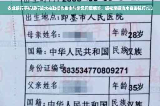 摘要:本篇文章介绍了农业银行手机银行拉流水的便捷操作指南和常见问题解答。用户可以通过手机银行轻松查询和打印流水,操作简便。文章详细阐述了操作步骤,并解答了用户可能遇到的常见问题,如遇到问题可参照解答进行解决。农业银行手机银行为用户提供更加便捷、高效的金融服务。